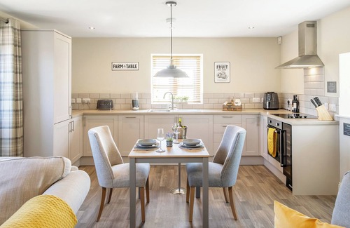 Woad Mills luxurious Barn Apartments are designed for comfort and elegance. Each apartment features a spacious 1 King bedroom with a modern en-suite, a stylish open-plan kitchen, living, and dining area boasting panoramic countryside vistas, a shared outdoor patio dining space, and an invigorating sauna. Additionally, a private hot tub is exclusive to each apartment, providing the perfect place to unwind after a day of exploration.