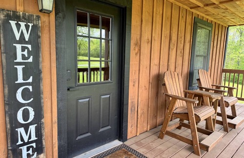 Cabin 2 @ The Farm is situated on a peaceful 90-acre property, featuring a 30-acre field perfect for outdoor activities like tossing a ball or simply enjoying the open space. Guests can explore scenic trails for a short hike or visit the nearby pond, just a few hundred feet from the cabin, where a simple dock provides the perfect spot for stargazing or relaxing by the water.