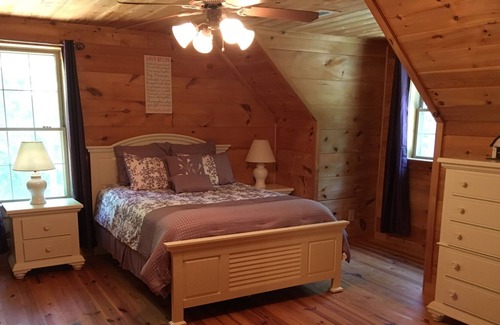 Located a convenient 10 minutes from the Tryon International Equestrian Center, 20 minutes to FENCE and 30 minutes to Lake Lure and Chimney Rock State Park, this charming 3 bedroom /2.5 bath Blue Ridge log cabin sleeps 8 and offers everything you need for a relaxing stay. Located on 36 private wooded acres in the heart of hunt country, the property features a 5 mile nature trail and stream that borders the property, plus ample parking for your horse trailer. Newly fenced pastures are available for your horses to enjoy with prior approval by owner.