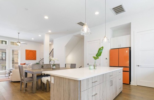 Welcome to your chic urban retreat! This luxurious three-story home features 3 bedrooms, 3.5 bathrooms, and 2,175 square feet of comfort, perfect for families or groups up to 8 guests. Highlights include a rooftop deck for sunbathing or stargazing, high-speed WiFi, smart TVs, and a spacious, open-concept living area. With major attractions just a short stroll away, you’ll enjoy a memorable Austin getaway, blending relaxation and city adventure.