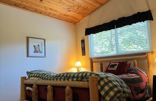 * “We shared the cabin with our friends. We loved being here. We saw deer and fawn this morning! We loved the huge pine cones found on our daily walks. Our kids (10 and 8) loved the loft, tire swing and the deck. Our youngest child loved cuddling up with all the bears found in every room of the cabin.”