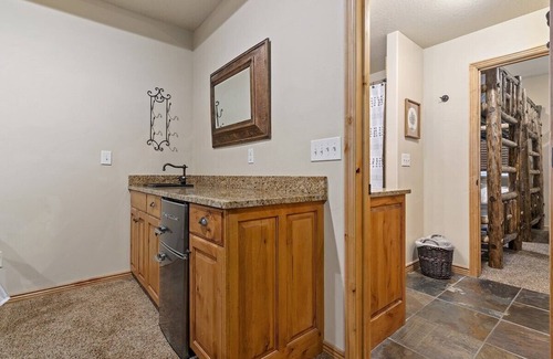 A beautifully rustic townhome, this property sleeps 14 people. The kitchen, dining area and living room are spacious and allow for plenty of memories to be made around the extra-large dining space. The property also includes a large family room, two-car garage, and laundry space. Some of the amenities of the surrounding complex include a community pool, hot tub, and an exercise area.