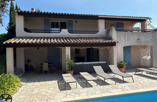 Beautiful private property with salt-water swimming pool, located at the hill above Bagnols en Forêt with view of the Roquebrune mountains.