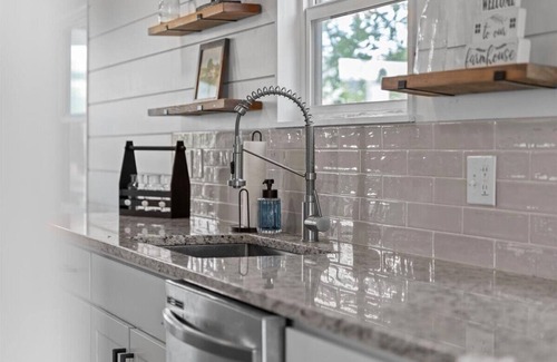 1910 Farmhouse comfortably sleeps 8 adults and 5 kids, with 2 full baths and a powder room with a penny floor. Don't miss the dedicated office space, downstairs man cave, and kids club! The property is adorned with mature trees, providing shade and privacy. Forget your worries in this spacious serene space.