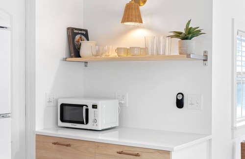 Original heart pine floors and large windows make the 2 bedroom, 1 bath cottage feel like your home away from home. Guests can enjoy ultra comfy queen-size beds and fully-equipped kitchen with a Keurig, coffee machine, Brita water filter (to avoid use of plastic bottles) and all cooking essentials. The cottage has a smart TV, desk, fast wifi and laundry, making it ideal for getaways short and long. The wraparound deck has a an outdoor dining table and a reading nook off of the primary bedroom. It also has a heated outdoor shower. In the cottage you'll also find a welcome book with curated recommendations for fantastic local restaurants, beaches and activities.