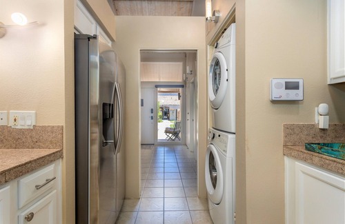 The Kitchen is fully equipped with all brand new utensils, cooking and bake-ware, crockery, glassware, silverware, Keurig Pod and drip coffee makers, four slice toaster, blender, air fryer, rice cooker, and waffle maker. It comes with a large gas range, microwave, refrigerator with ice maker and a dishwasher. It also has a new front-loading washer and dryer. The kitchen also has a Google Home Hub, your connected home assistant, perfect for asking questions, adding to your to-do or shopping list and playing music throughout the home.