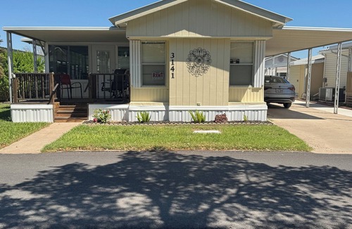 Escape to this delightful mobile home in picturesque Weslaco. This cozy retreat features 2 bedrooms with a queen and full bed, 2 bathrooms with shower amenities, and a range of comforts like AC, WiFi, and a fitness room. Make your holiday one for the books with a stay at our place. Utilities included.