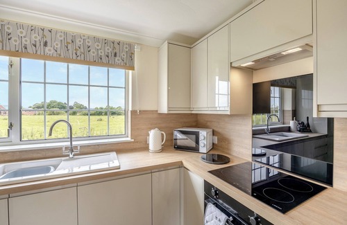 Shower Room: Cubicle Shower, Heated Towel Rail, Toilet. Electric central heating, electricity, bed linen, towels and Wi-Fi included. Welcome pack. Front garden with sitting-out area and garden furniture. 1 small dog welcome, to be kept on a lead at all times. Private parking for 2 cars. No smoking.. Nestled in the picturesque village of Burgh Le Marsh, this charming two-bedroom holiday let offers a serene escape in the heart of Lincolnshire. The property is finished to an exceptional standard, ensuring a comfortable and luxurious stay for all guests. Designed with convenience in mind, all accommodation is situated on the ground floor, making it easily accessible for everyone. As you approach the property, you’ll be greeted by a beautifully maintained garden at the front, perfect for enjoying the tranquil surroundings and the stunning views across the adjacent farm fields.