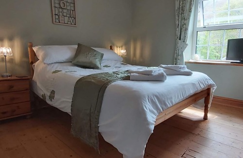Bathroom: Bath With Shower Over, Toilet. Oil central heating, electricity, bed linen, towels and Wi-Fi included. Rear garden. Private parking for 1 car. No smoking. Please note: There is a unfenced pond in garden. This property has a security deposit of £100. . A delightful, terraced holiday property in the small village of Dolfach just 1¼ miles outside of Llanbrynmair where there is a pub and café available. The area is popular with nature lovers, walkers, and cyclists and is within easy driving distance of Machynlleth and Newtown both of which have leisure centres (including swimming pools) and golf courses which welcome visitors as well as plenty of pubs, restaurants, and shops to stock up on supplies or browse at your leisure.