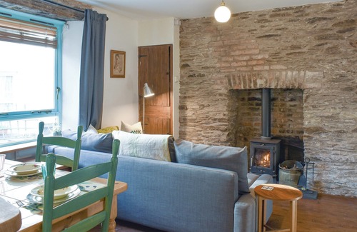 Bedroom 2: 2 x Single (3ft) Beds. Gas central heating, electricity, bed linen, towels and Wi-Fi included. Fuel for wood burner available locally. Welcome pack. Front garden with sitting-out area and garden furniture. On road parking, 20 yards; additional public car parks, at cost. No smoking. Please note: There is a step in the garden and the property can only be reached on foot.. This two bedroom cottage is located at the end of a mews and just minutes from the town’s high street and Fore Street, the most popular street for restaurants, so once you have enjoyed a day out, if you don’t fancy cooking then there are plenty of quality eateries on offer. The local main beach is just half a mile away and the town’s lovely harbour is just a bit further on. Accessed via stairs, which are steep in parts, are two bedrooms; a double and a twin and on the ground floor there is a comfortable living/dining room with Smart TV and a wood burner for warm nights in. The kitchen is compact but has everything you need and off the kitchen is a shower room. Outside there is a front garden with ample seating to enjoy warmer days or evenings out with a drink in hand.