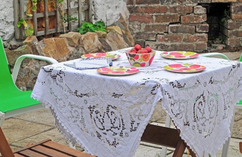 Bedroom 2: 2 x Single (3ft) Beds (Children Only). Electric underfloor heating (£20 per week October-March), electricity, bed linen, towels, Wi-Fi and logs for wood burner included. Travel cot and highchair available on request. Lawned garden with patio, sitting-out area and garden furniture. On-road parking. No smoking. . Absolutely perfect for two adults and two children - this 200 hundred year old rustic Grade II listed cottage with its cosy interior is set in a pretty little hamlet and simply oozes rustic charm! Small mullioned windows look out across rolling fields dotted with large mature trees, a wood burning stove sits in an inglenook and the pretty bedroom has a Victorian fireplace - lots of interesting ornaments and pictures everywhere reflecting the owners’ taste and personality. The cottage is surrounded by a beautiful old fashioned country garden full of colour and the lovely scent of lavender. The whitewashed walls in the delightful rear patio area are covered with climbing hydrangeas and clematis and the area has sun loungers as well as a dining table and chairs for al fresco meals in the sun.