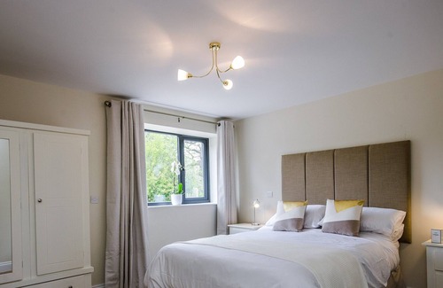 Bedroom 2: With kingsize bed and en-suite with walk-in shower and toilet.. Air source central heating, electricity, bed linen, towels and Wi-Fi included. Welcome pack. Catering and celebration cake (available by prior arrangement directly with owner). Spa treatments available, at cost.. Decked terrace with garden furniture and BBQ. Use of field. Hot tub for 6 (private). Private parking for 4 cars. No smoking.. Bentley’s Barn is a great example of an idyllically placed barn conversion situated on the edge of the small village of Press, near Ashover, and only 6 miles from the popular tourist town of Matlock. Beautifully placed in the village, this detached single-storey barn has been meticulously renovated to a beautiful standard throughout, and even has its own hot tub. The property exudes quality with a thoughtfully designed open plan living space, a fabulous kitchen area boasting granite worktops, two ovens, a steam oven and built-in coffee machine. The living area is comfortable and spacious with wood grain flooring, leather sofas and tasteful furnishings. Both bedrooms offer contemporary en-suite bathrooms one with a bath, and the other with a large walk-in shower; dressing gowns are also provided. With ample off road parking and a field with views over the countryside for outdoor games, as well as a private decked terrace with your very own hot tub, this property provides excellent accommodation with all the contemporary comforts you could wish for.