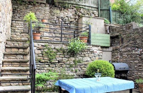 Bedroom 2: Kingsize (5ft) Bed, Single (3ft) Bed. Gas central heating, gas, electricity, bed linen, towels and Wi-Fi included. Travel cot, highchair and stairgate. . Enclosed courtyard with patio and garden furniture. On road parking; additional public car park, £4.50 per day. No smoking. Please note: There are 12 steps in the courtyard.. The Green is a wonderful quirky 18th-century, terraced cottage in historic Richmond. The owners fell in love with the old twisting beams, thick stone walls and panelling as soon as they saw it. At the back of the cottage there was once another small cottage which burnt down in the 19th century and was never rebuilt. Fortunately it now leaves the cottage with a lovely courtyard garden, totally enclosed and perfect for enjoying the Yorkshire sun. The cottage is Grade II listed and overlooks a neat green where you’ll see the residents compete to display the best pots and flowers.