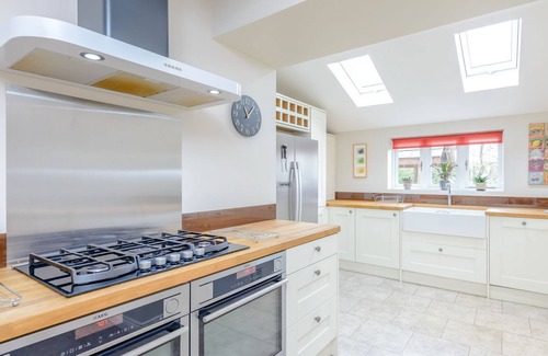 Shower Room: Cubicle Shower, Heated Towel Rail, Toilet. Gas central heating, gas, electricity, bed linen, towels and Wi-Fi included. Cot, highchair and stairgate. Welcome pack. Terrace with garden furniture. Private parking for 1 car. No smoking.. A fabulous, spacious two bedroomed cottage, set within the owners’ grounds, on a quiet lane in the popular Northamptonshire village of Spratton. The large open plan living and dining space flows through to the kitchen and French doors lead on to the terrace. The cottage has been tastefully decorated and furnished to provide a comfortable home away from home with high quality features. Why not sit outside and relax on the lovely terrace during the warmer weather? The master bedroom contains a luxurious slipper bath, and the shower room has a rain head shower. Perfect for couples, friends and small families, this versatile accommodation is the ideal self catering cottage.