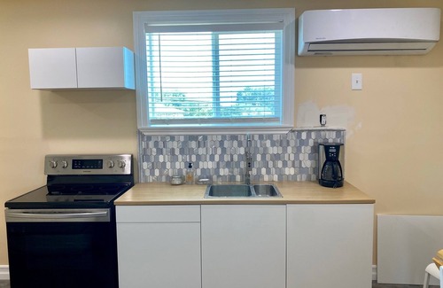 We are renting our beautiful 2 bedroom and 1+1/2 bath home. It is located in our backyard. It has beautiful garden (shared) and on the second floor. It has been built in 2021. It has Ac mini split climate control, High speed internet. First bedroom has queen size bed, sofa, tv, dresser. Second bedroom has queen size bed, private 1/2 bathroom, closet, night stands. Kitchen has 5 burner electric stove, fridge, coffee machine, tv, ac mini split, etc...