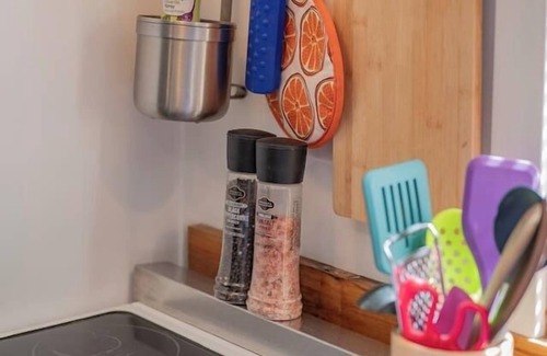 You will be booking a private, terrace level of 2 Indigo Suites listings in a 2-story house. This listing has a shared main entrance, open-concept contemporary kitchen, living room with a small foyer. Guests may use the dining table set, island for food storage, and a full kitchen with stove/oven, sink and dishwasher. Enjoy the large backyard picnic table or fire pit near the entrance for coffee, dinner or conversation!