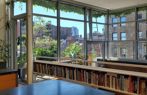 This penthouse was designed by its architect owner. The 2 story indoor space (5th and 6th floors) has incredible light with a wall of windows and skylights and soaring ceilings throughout. You can view the sunrise and sunset and see the clouds passing overhead from the kitchen. The apt has 3 bedrooms with 1 King size bed and 2 queen beds, and an office with a sofa which can be used as an extra bed. Take a walk up to the roof garden (7th floor) and enjoy the views. There are two additional outdoor areas on the 6th floor. This penthouse is an oasis in the city.