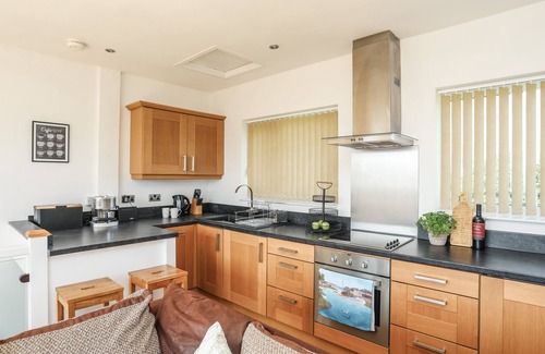 Amenities: Storage heating. Electric oven and hob, microwave, fridge/freezer, washing machine and dishwasher. TV, WiFi, selection of books and games. Fuel and power inc. in rent. Bed linen and towels inc. in rent. Travel cot and mattress. Off street and on street parking. Private balcony. Communal garden with lawn. Sorry, no smoking. Shop 0.1 miles, pub 0.2 miles, beach 0.3 miles. No dogs after 1st September 2023.