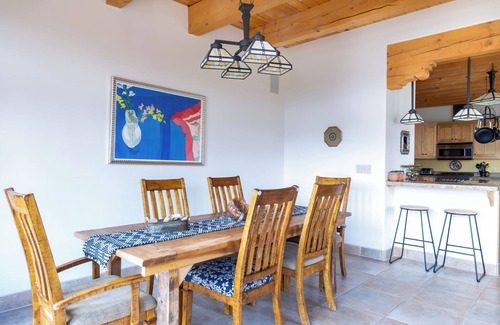 2200 sq ft, 2-BR, 2-Bath townhouse, hot tub, double-living rooms, cook's kitchen, cedar deck, garden is located in Arroyo Seco. 2200 sq ft, 2-BR, 2-Bath townhouse, hot tub, double-living rooms, cook's kitchen, cedar deck, garden provides accommodation, featuring Pet Friendly, Laundry, Wellness Facilities, among other amenities. This House features Pet Friendly, Laundry, Wellness Facilities, to make your stay a comfortable one.