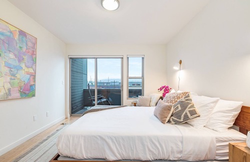 This beautifully furnished 2 bedroom/2 bath with walk-in closet, bathroom, and rooftop in a modern design of townhome also have a separate private office space with high speed internet. There's an open concept kitchen that looks into a modern dining area with beautiful floor to ceiling windows. The kitchen comes equipped with all the modern amenities including a Nespresso maker, French Press, and a variety of teas to choose from. Enjoy the lavish views of the Ballard neighborhood where a beautiful garden oasis awaits you on the rooftop deck or for a more romantic vibe, relax on the reclining chairs on the balcony with a glass of wine or pint just off the primary bedroom. A library of DVD’s and board games are located in the living where you can enjoy a SMART TV with endless streaming or gaze at the beautiful artwork displayed around the home. The space is also equipped with a lovely landscaped yard and a large parking space.