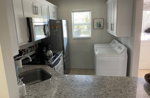 Newly furnished and renovated (new granite counters and new cabinets and appliances) 2br 2ba ensuite condo. Less than one block to beautiful beach on the Gulf with restroom access at the beach. Discounts for multiple months.