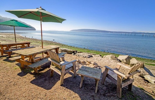 You'll spend lots of time in your 'outside living room', this is what you've come to West Beach Resort for, the beachfront experience! A spacious cover patio includes a charcoal BBQ, table, and comfy deluxe deck furniture. Just off the patio is your private beach fire pit that we know you'll love in the evenings. Cook up those s'mores or just relax and enjoy the scenery. We include two beach chairs, small table, and a picnic table/umbrella (seasonal). There truly is no other place you'll want to be on Orcas Island than right here watching the sun dip behind the outer islands - it's sort of our little secret guarantee!