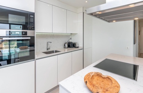 Fantastic apartment in Santa Barbara Heights which has everything neccesary for a pleasant stay, like AC/Heating, good WiFi, SmartTV and high quality furniture. The inviting terrace offers breathtaking seaviews, a private plunge pool and dining table. The beds in the second bedroom can be arranged as 2 singles or 1 double, on request. There are 2.5 bathrooms, fully equipped kitchen and private underground parking. Each bedrooms has its' own SmartTV also.