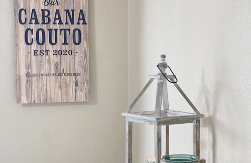 Cabana Couto is a cozy cottage with a screened-in back porch, with a table and some seating areas on the back porch. Out in the back, we have added an above-ground pool and a fire pit. We also have a BBQ half for propane and the other half can be used with charcoal.