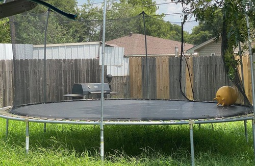 Your home away from home in Wichita Falls with 3 brilliant bedrooms. This delightful house features 1 king bed and 2 queen beds, perfect for a cozy stay. With amenities like AC, WiFi, a fireplace, a fitness machine, trampoline for kids, and grill guests can relax and unwind. The 2 bathrooms offer a refreshing shower and a hairdryer for convenience. An additional office space with a couch provides extra comfort. Minutes away from the mall and other retail stores. Just 1hr and 30min from Dallas/Fort Worth. 20 mins from the casinos in oklahoma. Theres alot to enjoy and explore. Enjoy your time in Wichita Falls at our charming house.