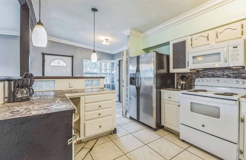 Located in Palmetto, this beautiful house features 3 queen beds across 3 bedrooms. With amenities like WiFi, heating, and AC, guests will feel right at home. The 2 bathrooms provide convenience for all. You're sure to make fantastic memories with a stay at our place. Enjoy the free coffee, teas with free creamers, sugars, Splenda, Sweet N Low. Washer and Dryer comes with free laundry pods and free bleach pods for your convenience. Kitchen also has free use of dishes, cookware, cooking utensils, and coffee maker. Take advantage of the dishwasher with free dishwasher pods or dish detergent to clean a smaller amount of dishes in the sink. All bathrooms come with free hand soap, free shampoo, free hair conditioner and free body wash. Relax in the refreshing hot tub on the back patio. Only minutes to hospitals, beaches, waterpark, restaurants and more.