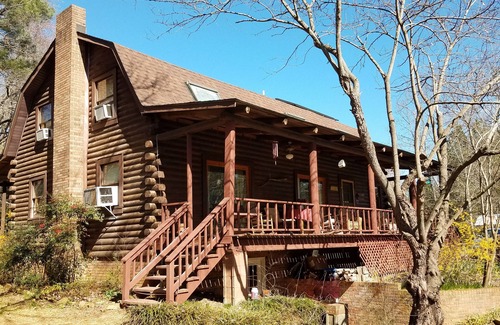 Nestled within an 11-acre retreat center, this charming hand-crafted log home offers three comfortable bedrooms, perfect for family vacations or intimate gatherings with friends or small intimate retreats. The home's rustic elegance combines with modern comfort to create an unforgettable stay.
