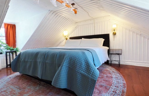 Stay in a vintage Japan–inspired apartment in the heart of the city. With a king bed, queen sleeper sofa, and twin sleeper sofa, it comfortably sleeps 5. Walk to the Kimmel Center, Academy of Music, and countless bars and restaurants—you won’t need a car for anything. Thoughtful design, unique décor, and a prime location make this the perfect spot for culture, nightlife, and comfort.