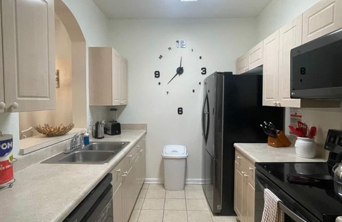 Nicely furnished and boasting hight quality mattresses, towels and linens, this 3 bedroom condo is set up for ultimate vacation efficiency and comfort. King size bed in primary suite features a tub/shower combo and large walk-in closet. A spacious Queen bedroom and fun Disney room with 2 twin beds and another spacious bathroom on the opposite side of the living area complete this great floor plan. Full size laundry facilities are located inside the condo and we include all of the basic necessities-such as soaps, sponge shampoo and even some coffee pods to get you started! The condo is being fully refreshed right now-so more pictures to come!!!