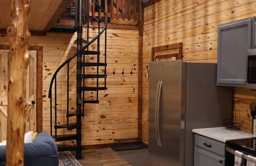 2. Modern Amenities: The cabin is equipped with three full bathrooms, so there's no need to wait in line to freshen up after a day of exploration. Our upscale kitchen is stocked with all the essentials, making meal preparation a breeze. Whether you're a culinary enthusiast or simply looking to whip up some quick snacks, you'll find everything you need here.