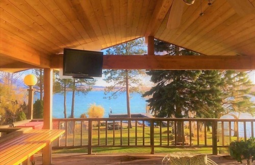IMAGINE waking up to breathtaking Flathead Lake views from your private deck or dock at this spacious 7-bedroom, 4-bathroom retreat! Sleep 20 comfortably, gather in 2 living areas, and whip up feasts in 2 kitchens. Adventure awaits: Kayak, paddleboard, or peddle boat across the sparkling lake. Relax amidst manicured lawns, babbling waterfalls, and fragrant flower gardens. Unwind in the private hot tub, sauna, or swim spa. Enjoy BBQing on the deck and sharing s’mores at the lakeside firepit. IMAGINE a world of unforgettable experiences at Flathead Lake Retreat. Nestled against the majestic backdrop of the Rocky Mountains, this sprawling 5,000 sq ft sanctuary blends luxurious comfort with unparalleled lakefront access. With space for up to 20 guests, it's the ultimate destination for families and friends seeking adventure, relaxation, and the timeless magic of Montana. THE EXPERIENCE: Wake to the soft glow of sunrise over Flathead Lake, the symphony of birdsong carrying on the breeze from your private deck. Stroll through lavish flower gardens designed by a Master Gardener, where waterfalls and creeks meander towards your private beach. Days unfold with dips in the swim spa and laughter-filled afternoons on the lake with kayaks, paddleboards, and pedal boats, all leading to your dock with a slide and swing. Cozy evenings beckon with s'mores around the lakeside firepit, comfortably seating 20, and delicious creations from the BBQ. Within Flathead Lake Retreat, find ample space designed for togetherness and privacy: UPSTAIRS: Retreat to the spacious master suite featuring a king-size bed and ensuite bath. Two additional king bedrooms and a delightful bunk room (twin-over-twin bunks) ensure restful nights. Enjoy a fully equipped kitchen, inviting dining area, billiards room, and sun-filled living room with a 60-inch TV. Relax with high-speed WiFi and the convenience of an in-unit laundry room. OUTSIDE: A 600 sq ft covered deck with dining room for 20 and its own large BBQ and Traeger. DOWNSTAIRS: Gather in the comfortable living space with a 42-inch TV or whip up snacks in the convenient kitchenette. Three queen bedrooms, two with twin-over-twin bunk beds, offer sweet dreams. Step into ultimate relaxation with the lake-facing pool room, 21-foot swim spa, six-person hot tub, sauna, and shower. Indulge in every creature comfort: Numerous bedrooms and bathrooms for large groups Two well-stocked kitchens Game room for friendly competition Soothing hot tub, rejuvenating sauna Private dock, beach, slide, and swing Wide array of complimentary water toys Lakeside BBQ Ample parking for 7 vehicles More than just a vacation rental, Flathead Lake Retreat is a passport to extraordinary experiences. From shared meals to thrilling water sports, this is where lifelong memories are forged. Book your slice of Montana paradise today!
