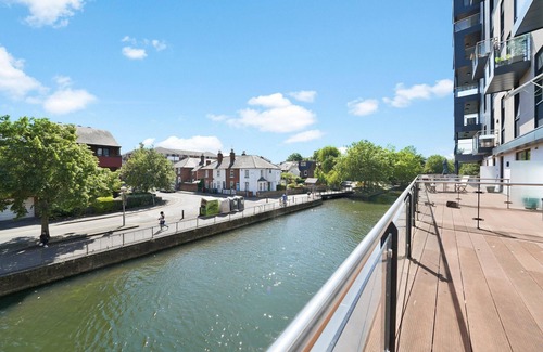Kennet House Serviced Apartments by 360stays have spacious lounge/diners, two large bedrooms, one en-suite and one main bathroom. In the very heart of Reading, a short walk to the Oracle Centre, station and town centre. It's ideal if you want superb accommodation in the town centre. Luxuriously large, with it's own private courtyard entrance in a block with Concierge, and secure, underground parking space plus an elegant south facing 300 sq ft private terrace overlooking the River Kennet.