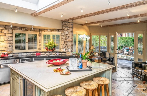 Guests will appreciate the quiet neighborhood that surrounds this 4-bedroom, 2.5-bath home, where outdoor living space is plentiful, a great setting for families and friends to gather together underneath the Monterey pines and native live oaks. A casita in the back yard offers a private space that is separate from the main house, with its own bed, bathroom and mini-fridge.