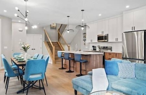 Indulge in a luxurious 4-bedroom, 3.5-bath NW Calgary retreat, featuring two king beds and a large master bath. Relax with a private garage, vibrant game room, fully equipped kitchen, and FREE Netflix on a smart TV.