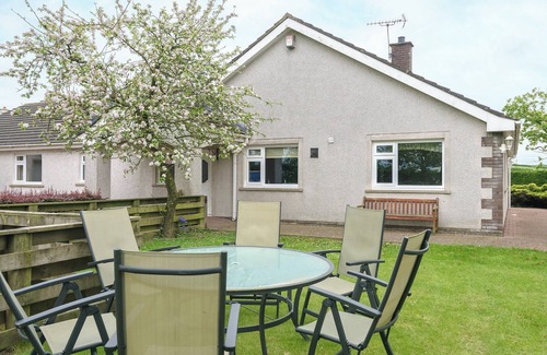 Bathroom: Jacuzzi Bath, Cubicle Shower, Toilet. Biomass central heating, electricity, bed linen, towels and logs for wood burner included. Patio with sitting-out area, garden furniture and barbecue. Hot tub (private). Sauna (private). Private parking. No smoking. Please note: There is a fenced pond in the garden.. This spacious holiday bungalow is well furnished and equipped with good facilities. There is an excellent ratio of bedrooms to bathrooms plus the hot tub and sauna help provide accommodation which is suitable for friends and families to relax and share in comfort. The biomass boiler provides eco-friendly heating. Peacefully situated in the small hamlet of Langrigg, next to the owners’ mixed farm, the holiday home is ideally positioned for exploring the North Western Lake District and the Solway Coast, 10 miles, which is well known for its golf courses. Wonderful walks, cycle routes and stunning scenery abound with much to interest historians, ornithologists and outdoor enthusiasts. The interesting, traditional market town of Cockermouth with its William Wordsworth connection and the popular, bustling lakeside town of Keswick are both about a 20 minute drive. The border city of Carlisle is a few minutes further along with Hadrian’s Wall and Scotland. Shop 2 miles, pub 1 mile.
