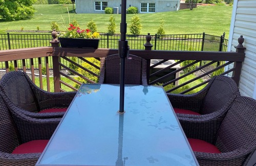 Relax with the whole family or Friends at this peaceful place to relax. Enjoy amenities like inground salt water pool and hot tub for 4 with a beautiful scenic view. Looking for people that are going to appreciate, Love and take care of the house as we do. In the winter fire pit and fireplace.