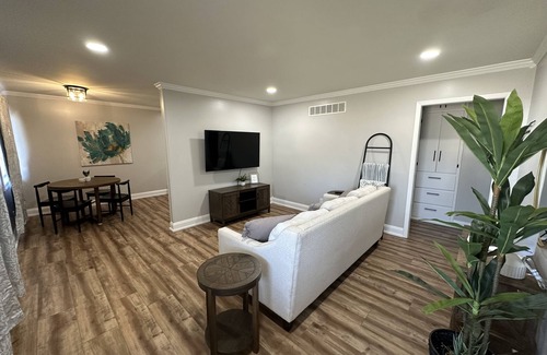 Escape to our charming 4-bedroom vacation home in the heart of Wichita. Enjoy the convenience of being just a 9-minute drive from Wichita State University and a 10-minute drive from the INTRUST Bank Arena. Indulge in a shopping spree at the nearby Towne East Square, just a 3-minute drive away. Stay connected with the provided WiFi, and keep your clothes fresh with the in-unit washer and dryer. Relax in comfort with the essentials, including 2 bathrooms, towels, basic soaps, a hair dryer, an iron and board, and climate-controlled air conditioning and heating. Experience the perfect blend of comfort and convenience in our inviting vacation home.