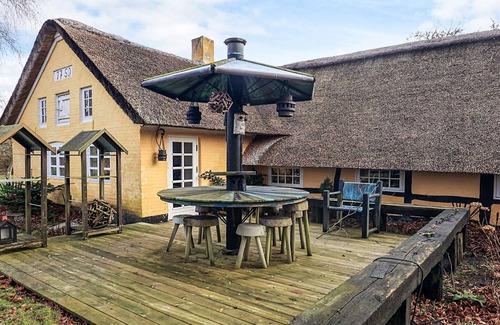This thatched half-timbered house with whirlpool and sauna is located in the middle of Asaa town with just approx. 500 meters to the port. The house itself is a half-timbered house with cosiness and charm. The ceiling is not high due to the exposed beams. Here is both sauna and whirlpool. The house's double beds are & # 8221; wedged in & # 8221; at the end of the bedrooms so that there is no space next to the beds. In the living room there is an alcove, which is mostly intended for children. TV is only for streaming own services. The house is surrounded by a spacious garden, where there is space for various outdoor games and games. Outside on the terrace there is both a smoking oven and a fireplace. Here is also a fixed round table with a cover, around which milk stools are placed. In the garden you will also find a nice fire place and various fruit trees. Not for rent to youth groups. A refundable deposit might be charged closer to your check-in date. This deposit covers utilities consumed during your stay and any additional services that may be taken. The final amount will be adjusted based on actual meter readings, actual usage of extra services, and any remaining balance will be refunded within 21 days after checkout.