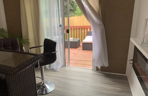 Game table including air hockey & ping-pong located in the living room area. Great for a game night or hosting small gatherings. We are 420 friendly here with smoking areas located on our front porch, back patio, and the back porch. All of our rooms have a different vibe kitchen space large and open