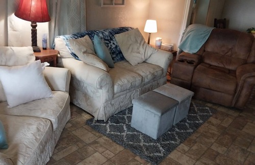 A very comfortable and affordable place. It's very peaceful and safe pets are welcome. Two bedrooms and one bath with refrigerator and kitchen has washer and dryer. Parking for 2 cars. It's behind police department very safe.