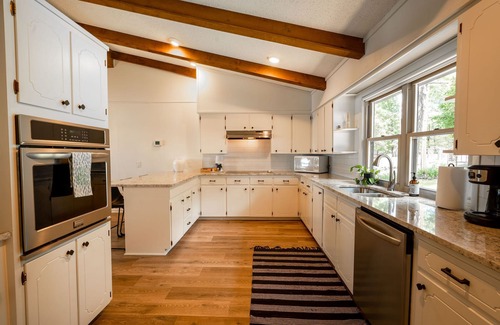 Newly remodeled located in a residential neighborhood, the interior of Stet's Landing features an open floor plan with vaulted ceilings. On the main level you will find three bedrooms and two bathrooms (the master bedroom has an en suite bathroom). The living room, dining room, and kitchen feature beautiful views of Greers Ferry Lake. Right off of the living room is the expansive deck with an outdoor dining room table and seating. Downstairs features a large living room with a pool table, smart tv, and two twin beds. Downstairs is also where the other two bedrooms + bathroom is located. Heading outside, you will find a large firepit with seating and an easy path to the shore's of Greers Ferry Lake.