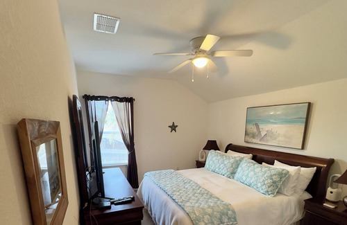 This home comfortably sleeps 10 guests across five private bedrooms, with three full bathrooms and an additional half bath. Each bedroom is equipped with a smart TV.