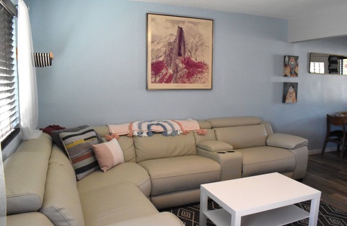 Across the street from a beautiful and spacious park that has a swimming pool, soccer fields, basketball and pickleball courts, as well as multiple baseball fields. This is a small, but cozy, 3 bed 1 bath home with enough yard and driveway space for the whole family. Home amenities include but are not limited to, a gas barbecue grill, washer and dryer, wifi internet and a reclining sofa, to relax after a long day. A mere few minutes walk to a wonderful downtown area that has authentic mexican bread and the most delicious cafe right next door.