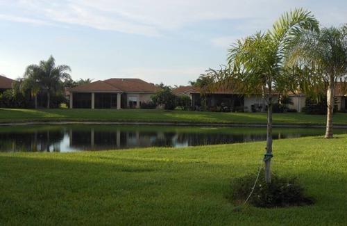 Our home has 2 bdrms the master has a king ized bed and there are two twin beds in the second bdr. There is a comfortable sleep sofa on the 4 season lanai and a futon in our "flex room". 2 full baths. The lanai has sliding windows, A/C and heat for yr round comfort. 2 55' flat screen TVs (1 in living rm and 1 in lanai) with a third TV in the master bdrm. Gas grill on patio. Use of our upgraded golf cart. All the comforts of home.
