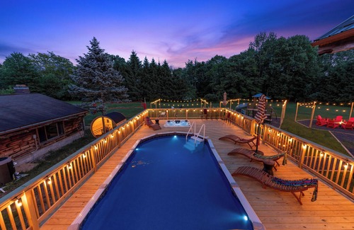 5BR Lux Log Mansion w Legendary Amenities & Pool! has 5 Bedrooms , 2 Bathrooms, and max occupancy of 12 people. The minimum rental for this property is 1 nights, but this can change depending on the season you plan on staying. Previous guests have given good rated it, and VRBO labeled it a top-rated Cabin because of the excellent services rendered by the owner or manager of this Cabin, and has consistently provided great experiences for their guests. Most families or guests that use it recommend it to their friends and some of them are repeat guests. Cabin has a friendly neighborhood, and the East Stroudsburg has interesting places to visit. If you want to learn more about the Cabin in East Stroudsburg, such as places to visit and things to do nearby, you can check below to learn more.