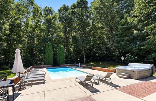 6 bdrm, 5.5 ba, heated pool, hot tub, fire pit and putting green | House in Grand Beach, MI